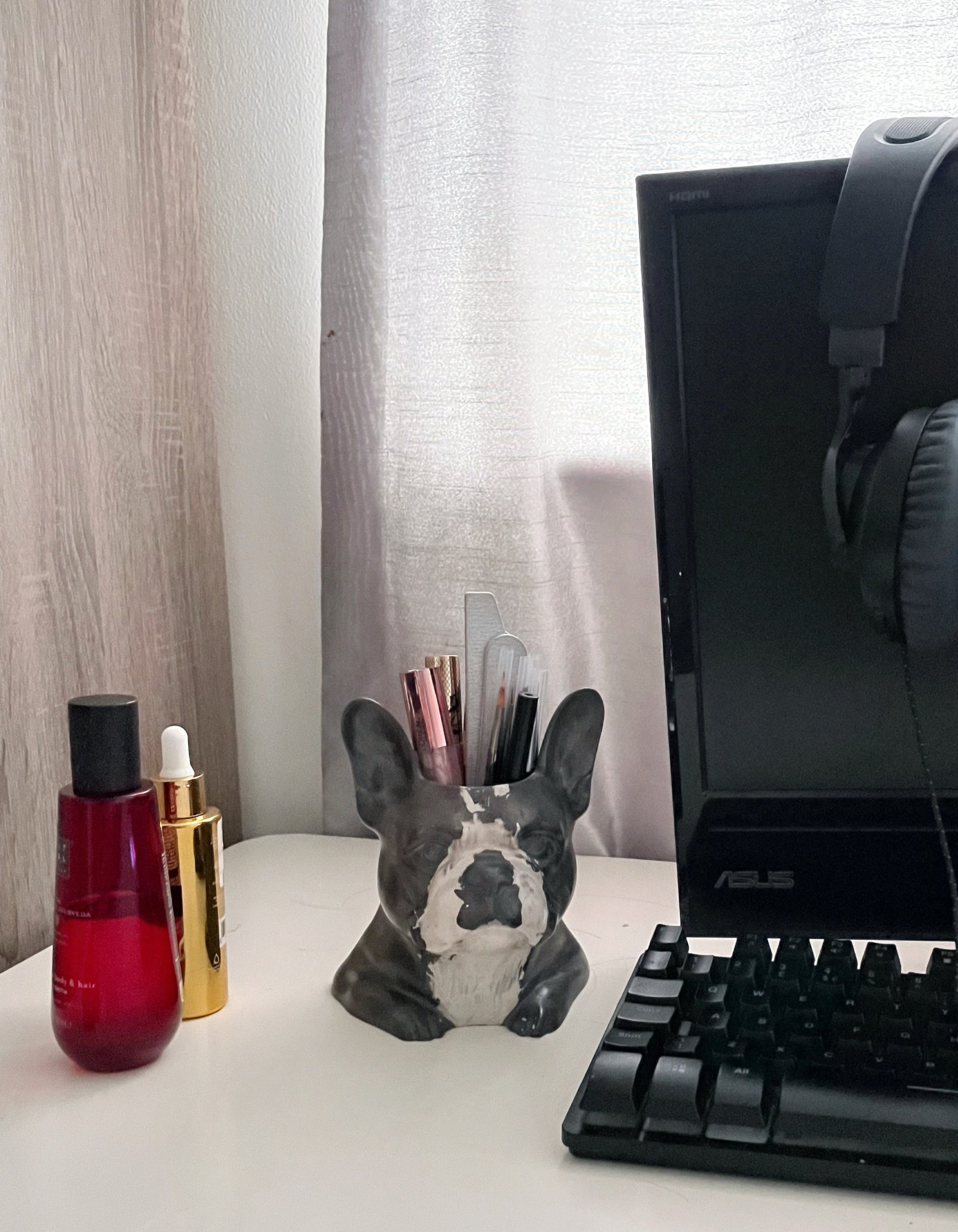 This sculptural dog head planter is a unique decorative accent designed to bring character and warmth into your interior.